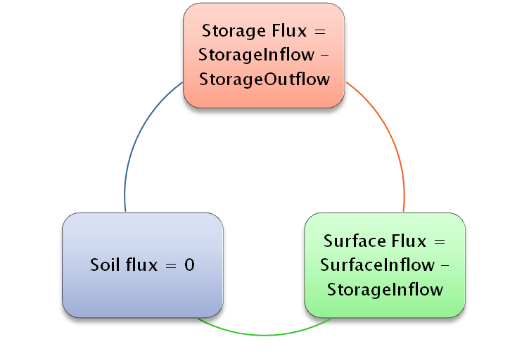 The fluxes are limited in a Rain Barrel Low Impact Development (LID) control in SWMM 5. The fluxes only include (Figure 1 and Figure 2):